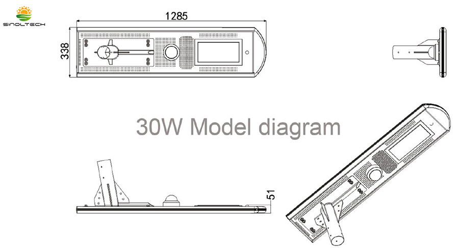 30W LED Integrated with 70W PV and 44AH Battery